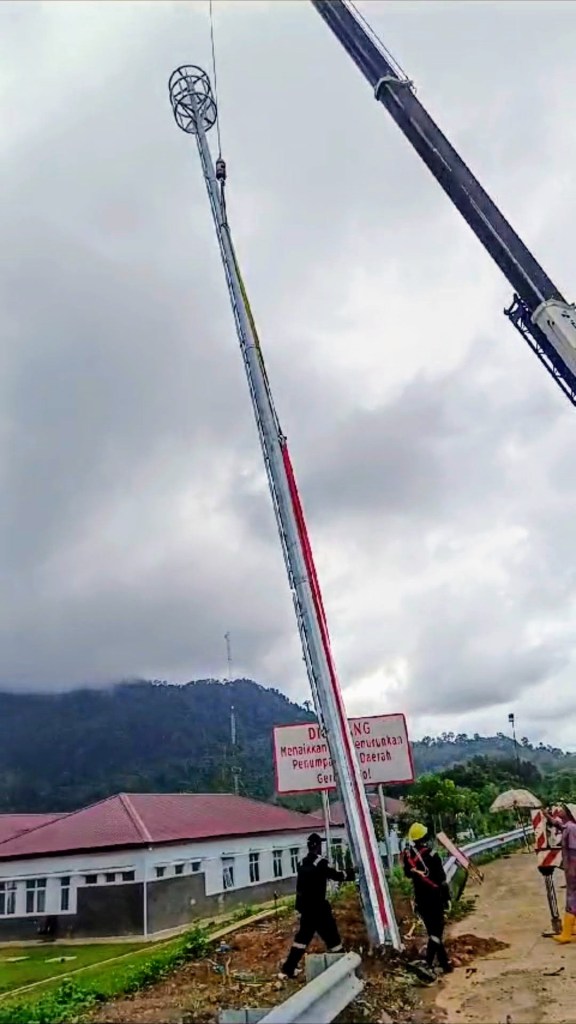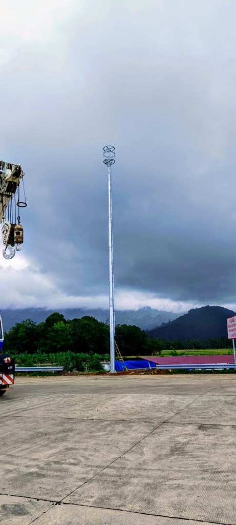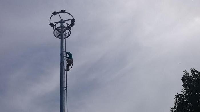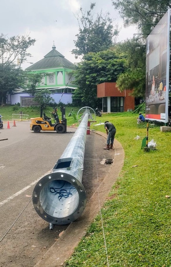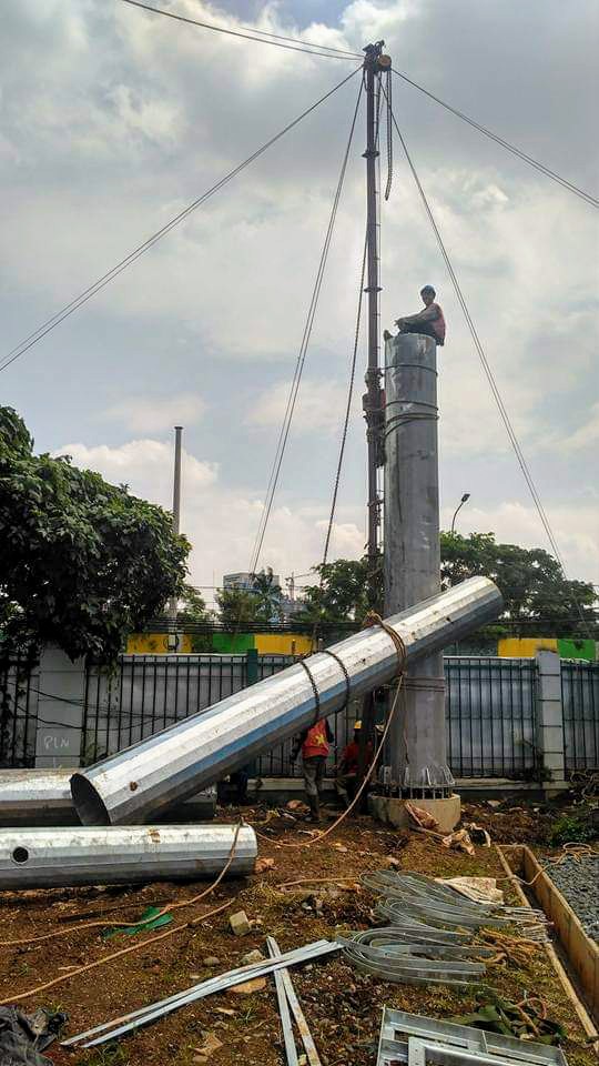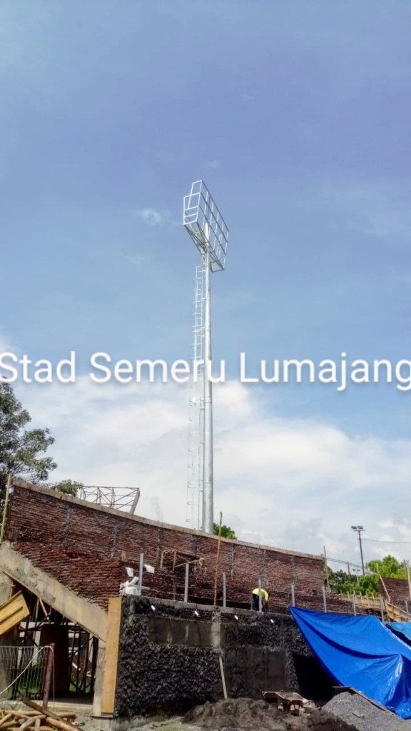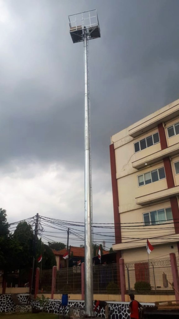 Tiang High Mast 20, 25, 30 Meter | Tiang Lampu Sorot 10, 12, 15 Meter | Tiang Lampu Lapangan Bola 30, 35, 40 Meter