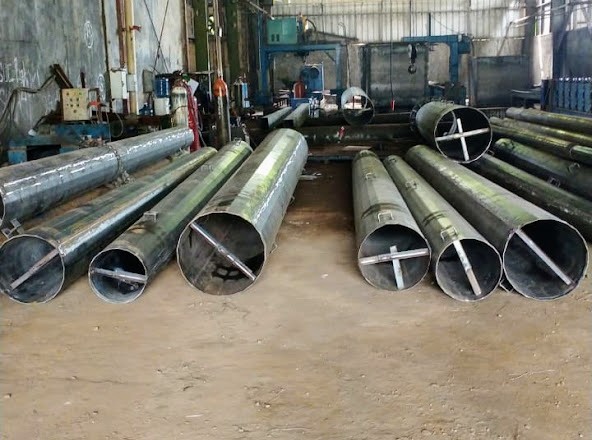 - Pengelasan longitudinal segmen tiang high mast dan tiang lampu sorot menggunakan mesin las automatik line (dibuktikan saat kunjungan pabrikan)
