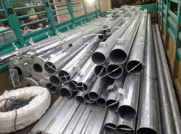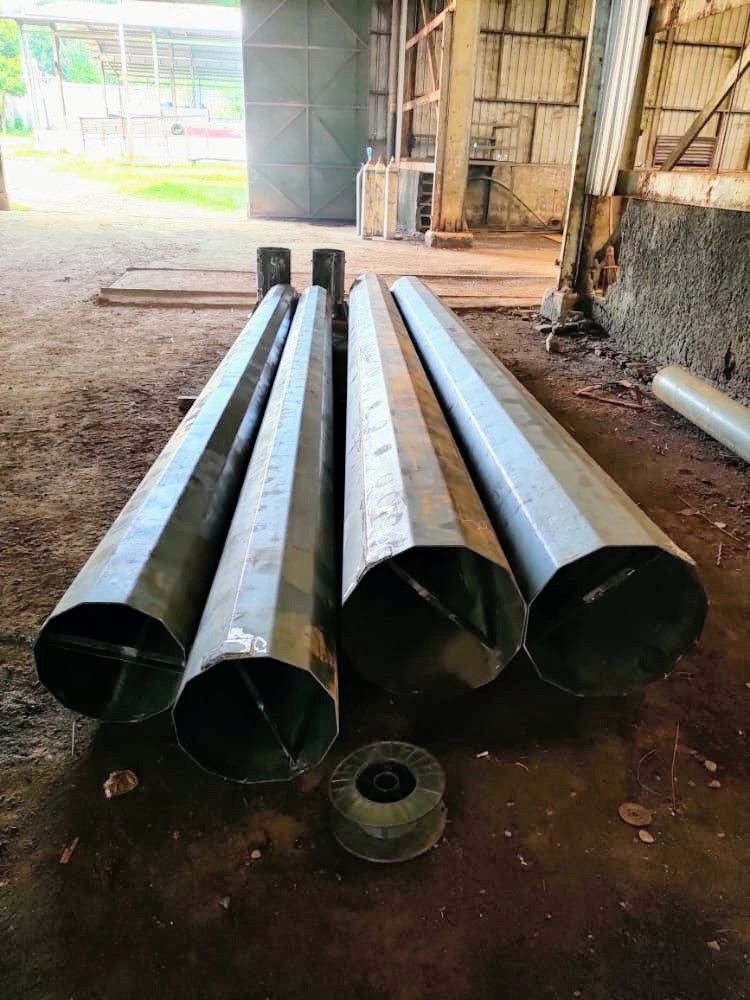 Kami menawarkan tiang high mast dan tiang lampu sorot lapangan bola yang dibuat dari plat baja lembaran yang diproses bending (proses tekuk plat) sehingga memiliki penampang badan tiang berbentuk poligonal berbagai segi tergantung pada besar diameternya, yang didesain semakin melancip ke atas (taper pole) untuk menunjang kekokohkan strukturnya dari beban yang ditopang dan terpaan angin.