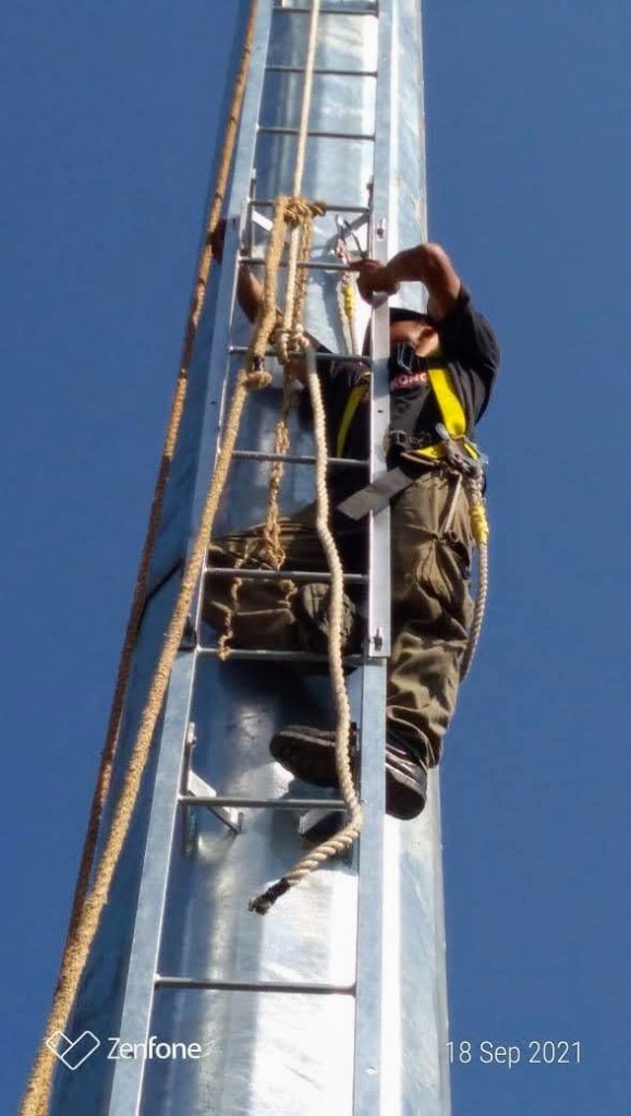 1. Tiang lampu high mast tipe manual atau dilengkapi dengan tangga panjatan untuk orang naik maintenance melakukan perawatan rutin maupun mengganti lampu yang sudah tidak menyala/rusak.