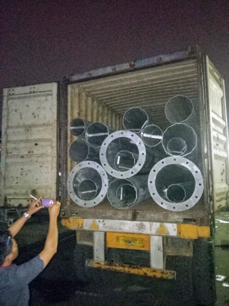 Kami adalah pabrik yang memproduksi tiang high mast, tiang lampu sorot dan tower lampu lapangan sepak bola dengan material plat kapal (marine plate) ukuran 5’x20′ dan 6’x20′ berupa plat baja karbon rendah Japan Standar JIS G-3101 equivalent American Standar ASTM A-36 equivalent China Q235B equivalent Europe S275JR Steel Structure/SS400 (minimum tensile >400 MPa). Spesifikasi material yang memenuhi standar Kementerian Pekerjaan Umum dan Kementerian Perhubungan.