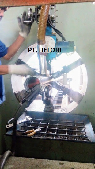 - Pengelasan longitudinal segmen tiang pju menggunakan mesin las automatik line (dibuktikan saat kunjungan pabrikan)