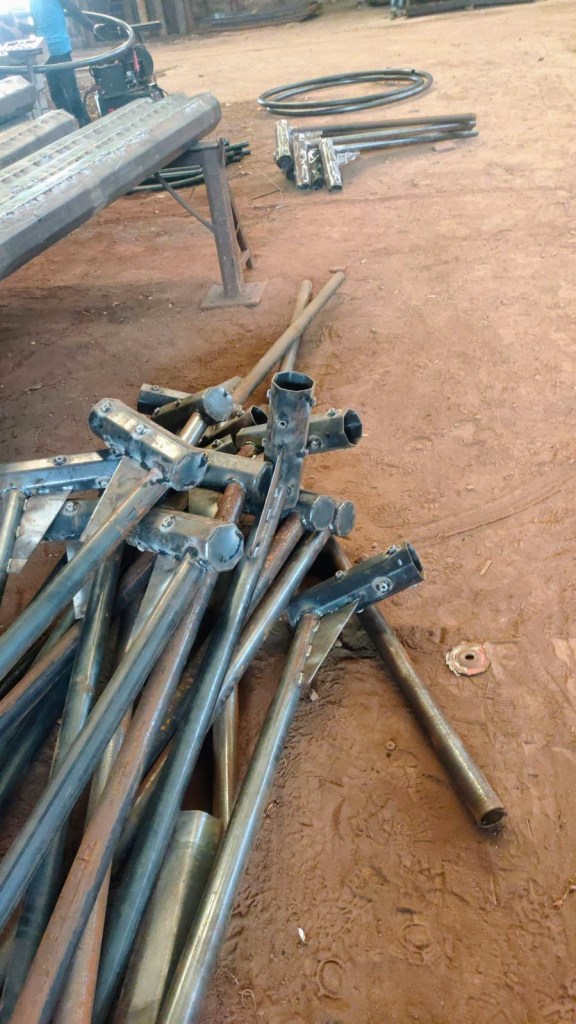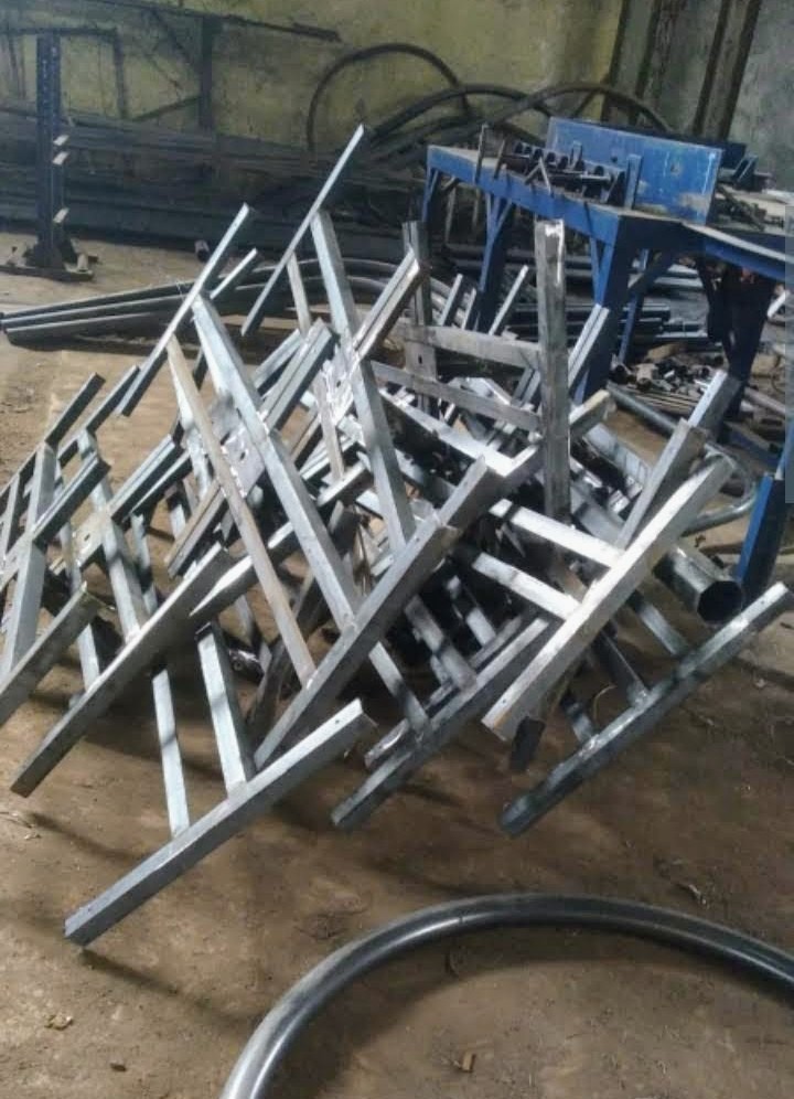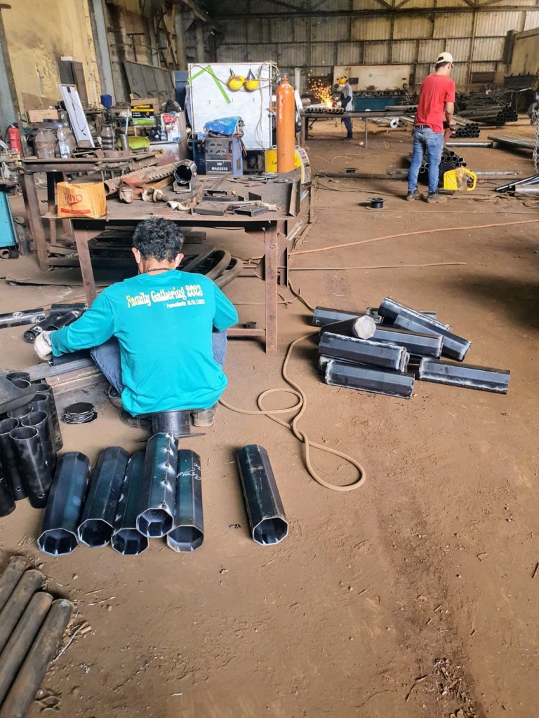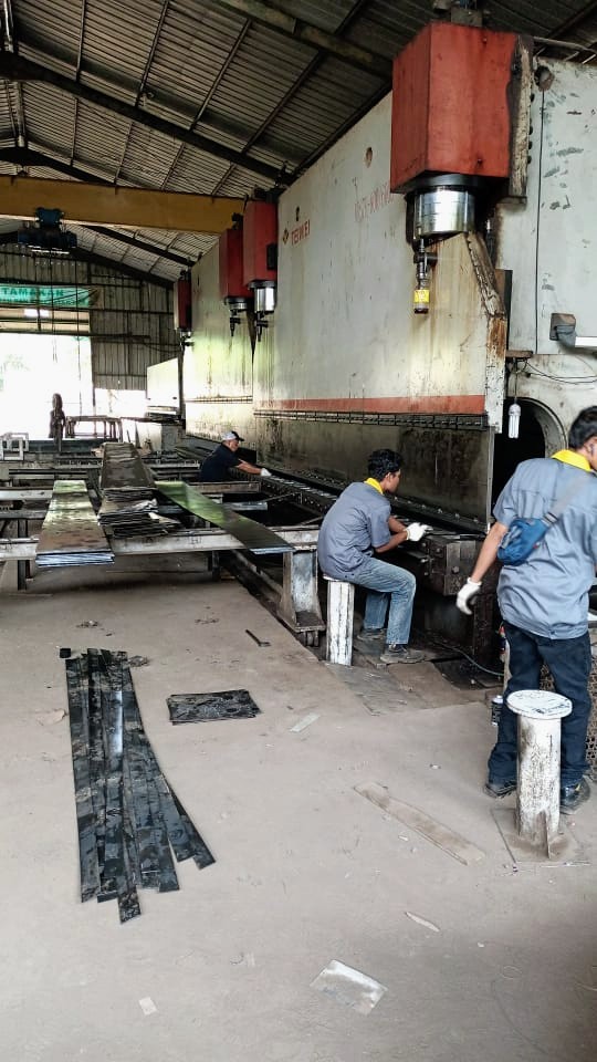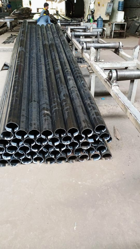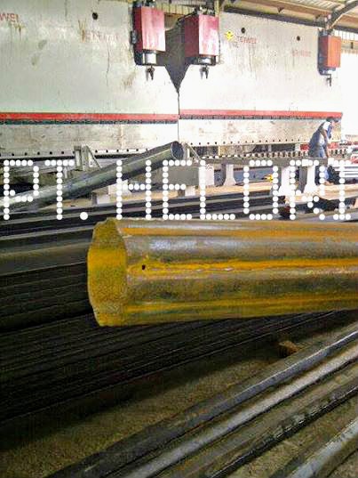1. Tiang PJU oktagonal diproduksi dari lembar plat baja yang ditekuk press (bending), lalu dilas cantum (tack welding) dan mengelasnya secara longitudinal.