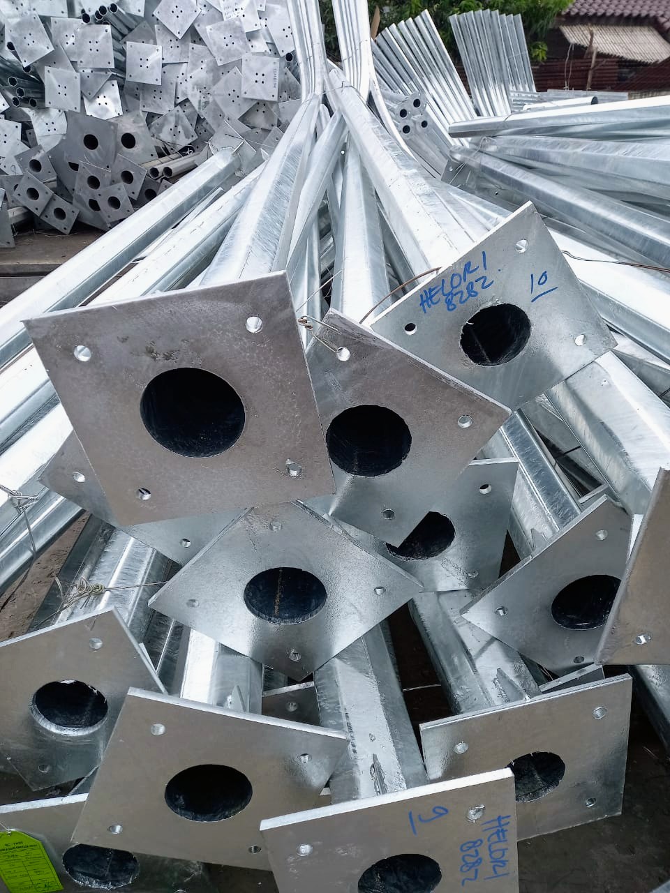 Kami adalah pabrik yang memproduksi tiang lampu pju oktagonal dengan material plat coil JIS G-3131 SPHC maupun plat kapal (marine plate) ukuran 5’x20′ dan 6’x20′ berupa plat baja karbon rendah Japan Standar JIS G-3101 equivalent American Standar ASTM A-36 equivalent China Q235B equivalent Europe S275JR Steel Structure/SS400 (minimum tensile >400 MPa). Spesifikasi material yang memenuhi standar Kementerian Pekerjaan Umum dan Kementerian Perhubungan.