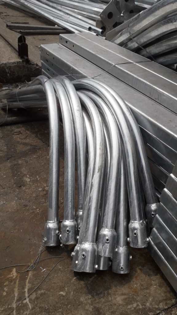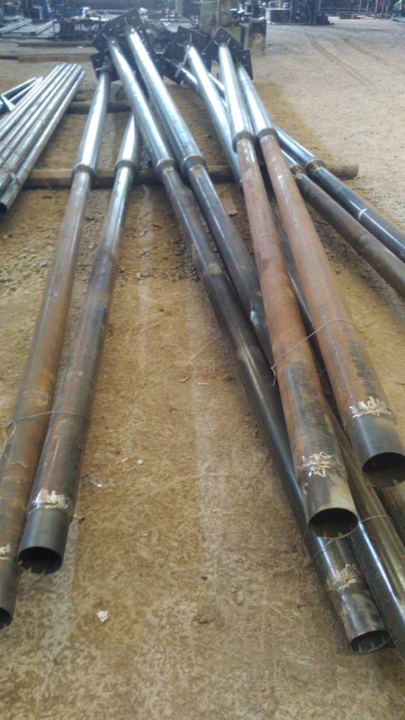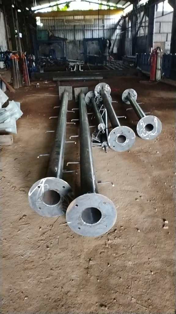 Desain tiang lampu pju bulat berbahan pipa agar diperoleh kekuatan maksimal, maka idealnya diameter pipa yang digunakan semakin kecil ke atas.