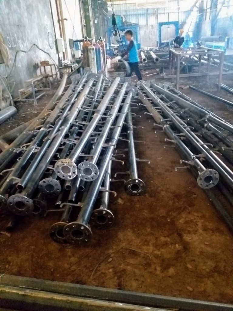Kami adalah pabrik yang memproduksi tiang lampu pju bulat material Pipa Seamless dan ERW Steel Structure/SS400 (minimum tensile >400 MPa). Spesifikasi material yang memenuhi standar Kementerian Pekerjaan Umum dan Kementerian Perhubungan.