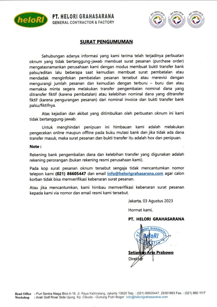 Himbauan untuk berhati-hati dengan modus baru penipuan pura-pura po/puchase order